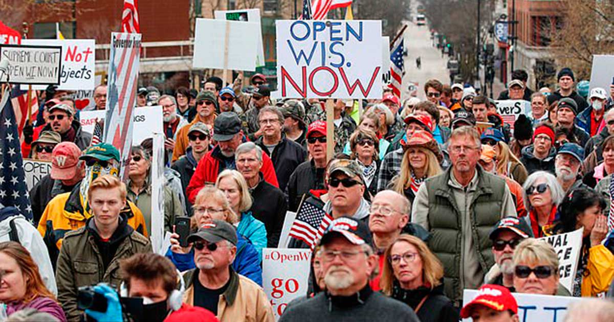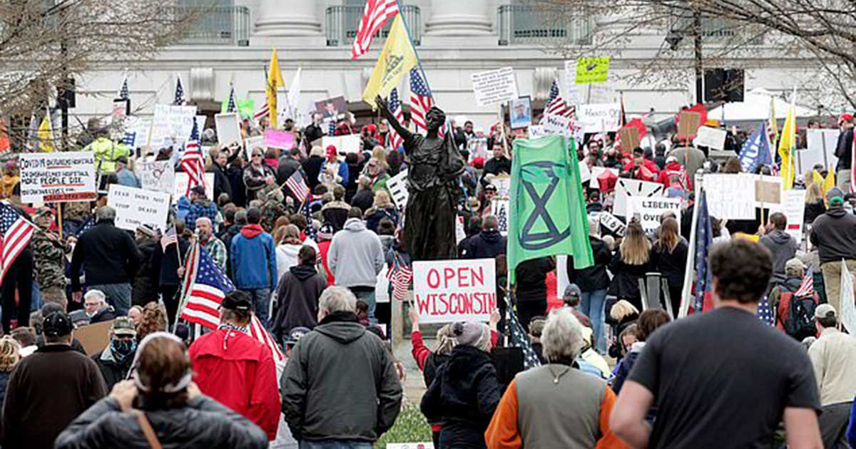 Two days prior April 26, protesters by the thousands gathered outside Wisconsin’s capitol building demanding Democratic Governor Tony Evers to reopen the state, making it one of the largest anti-lockdown rallies to happen across the country.