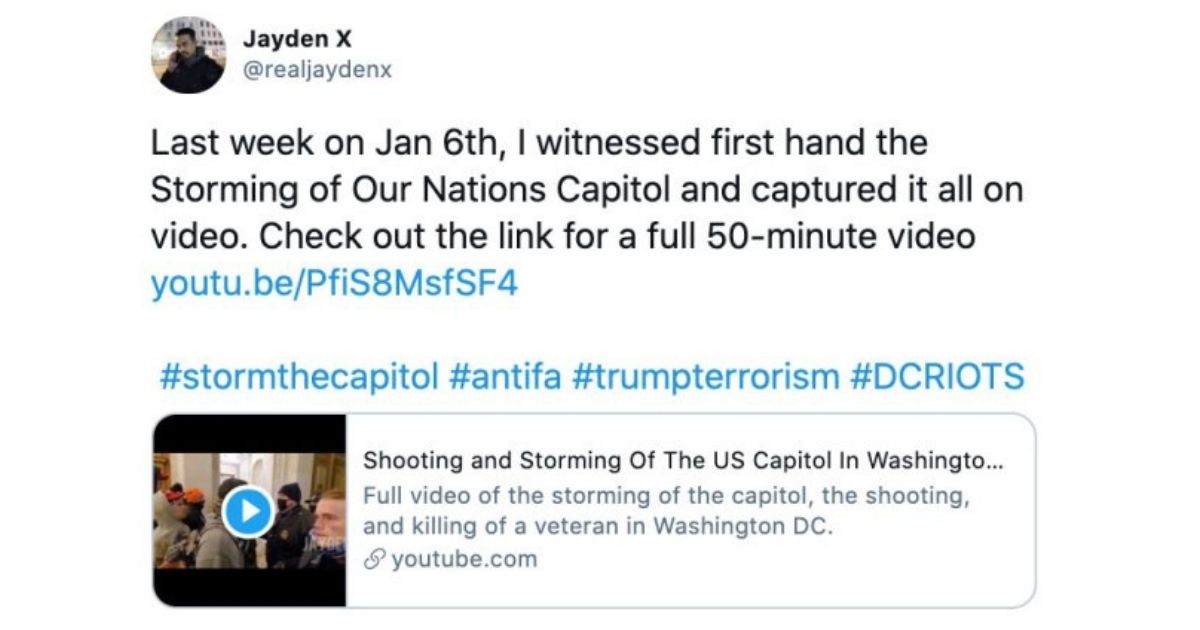 Sullivan has also shared the video to his YouTube and Twitter accounts under the pseudonym Jayden X.