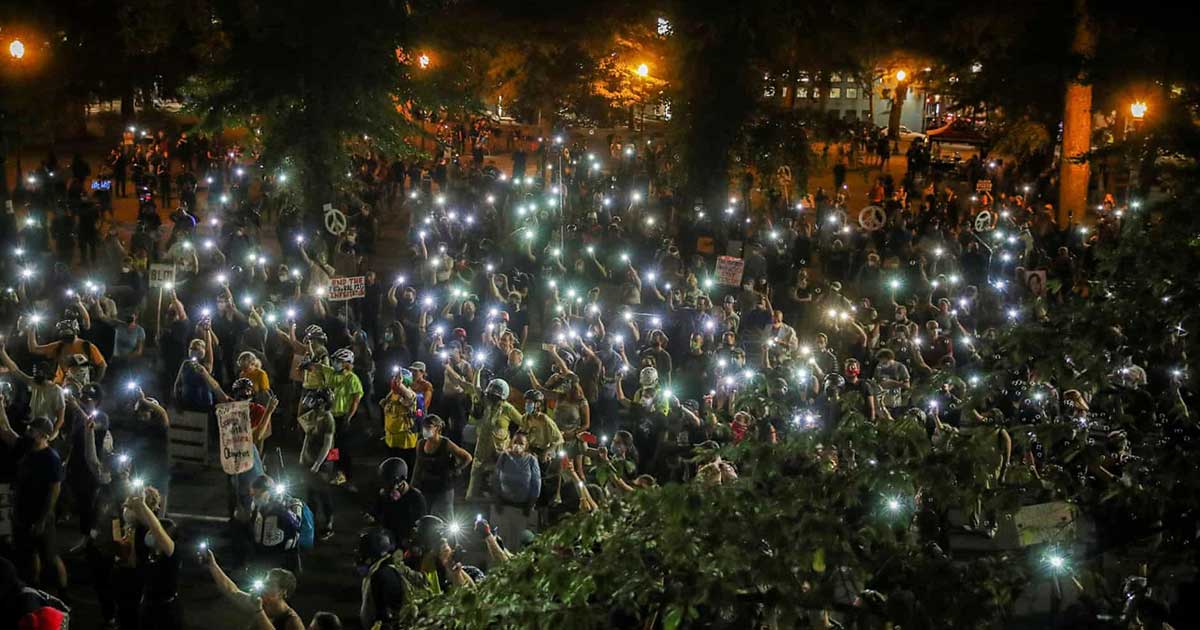 When some people climbed over the fence and climbed back out, federal agents deployed another round of tear gas and stun grenades in an attempt to deter the large crowd.