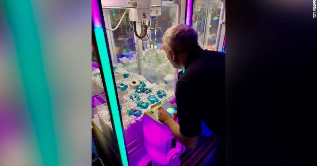 Rob Braddick, 48, who owns Braddick’s Holiday Park in Westward Ho!, Devon, in the southwest of England, has filled the toy grabber machines in his amusement arcade with two of the country’s most sought-after sanitary products, toilet paper and sanitizers.