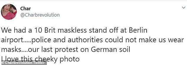 A large group of anti-maskers from Britain behaved ridiculously upon a flight home from Berlin.