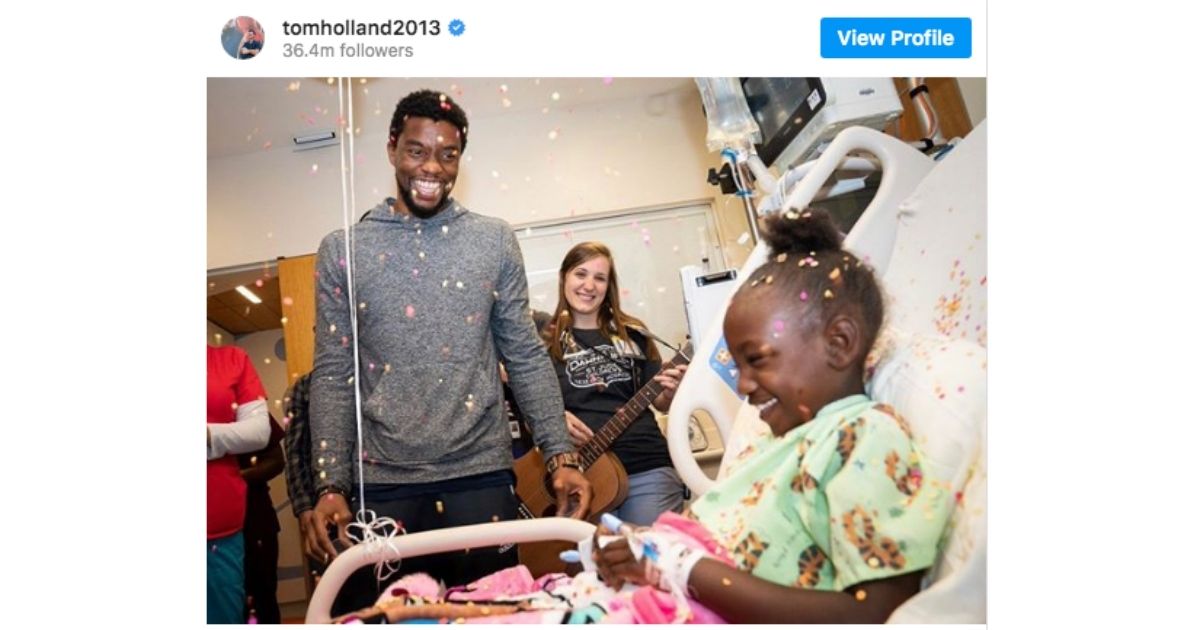 Spider-Man actor Tom Holland posted a photo of Boseman visiting a child in the hospital, writing: “Chadwick, you were even more of a hero off-screen than on. A role model not only to me on set, but to millions of others around the world. You brought joy and happiness to so many and I’m proud to have been able to call you a friend. RIP Chadwick.”