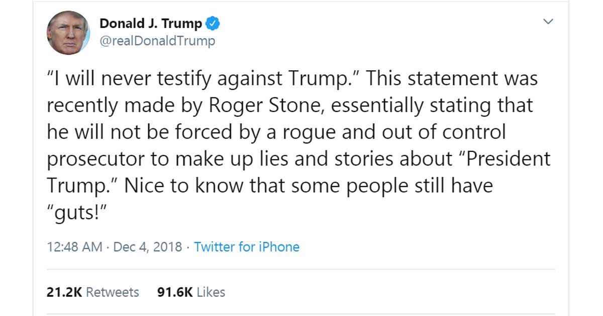 He is particularly referring to Trump’s public comments made via Twitter about sensitive investigations.