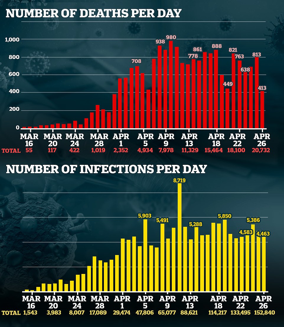 Speaking in the Government briefing, Professor Stephen Powis, National Medical Director of NHS England, praised Britons obeying lockout and social distancing steps with the apparent drop in new cases and the plateauing of deaths.