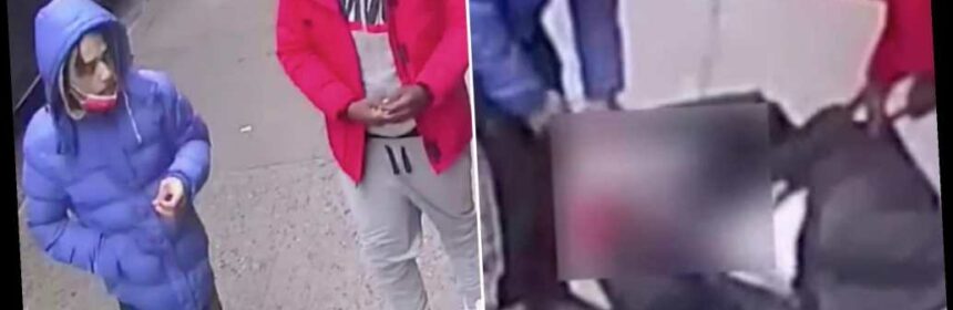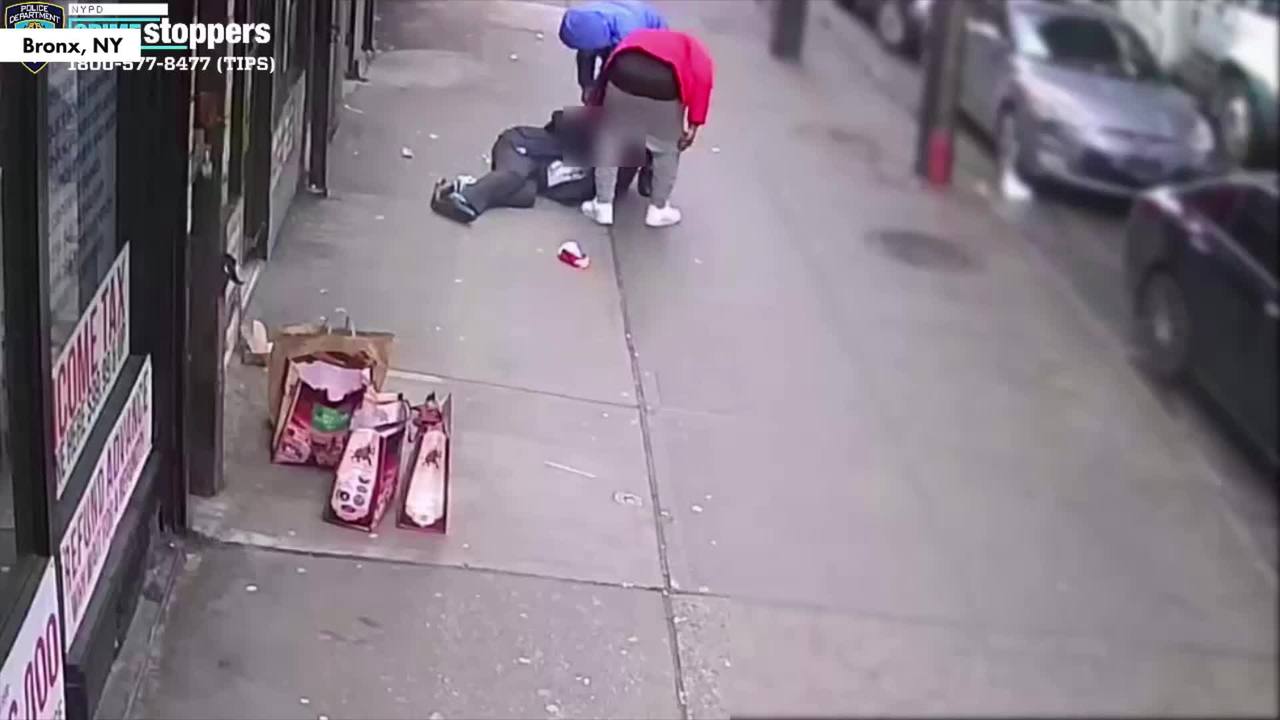 Disturbing new footage by police officials shows two muggers beating up an innocent man during a Bronx robbery recently.