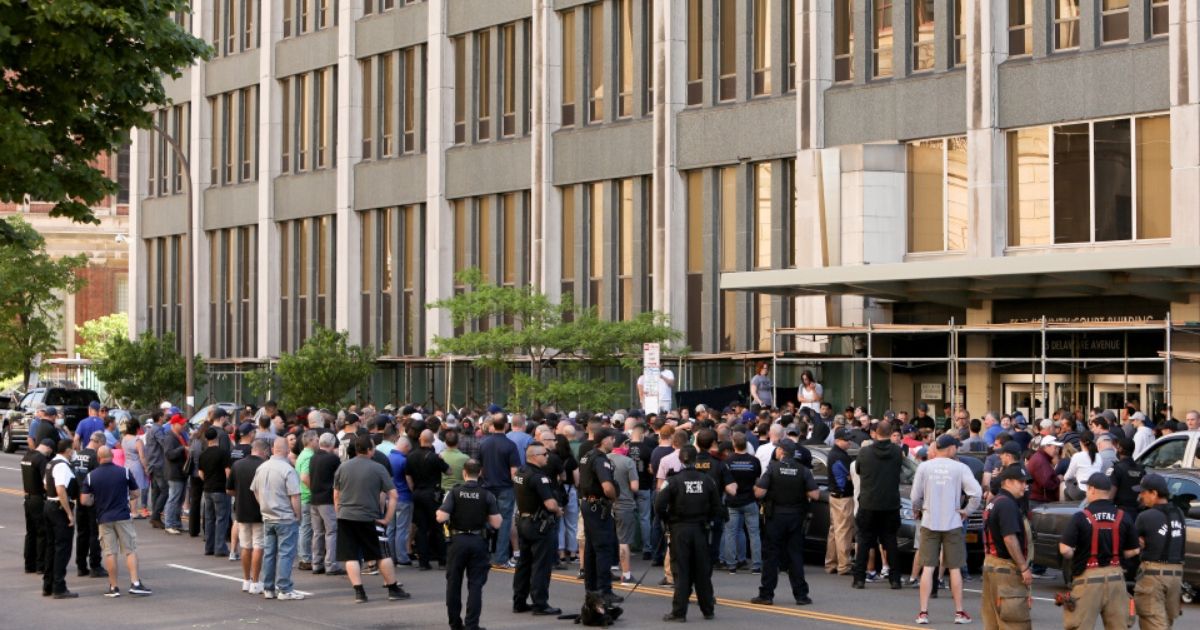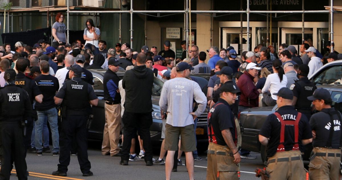 The crowd who gathered outside the Buffalo court was mostly made up of off-duty officers, firefighters, and friends.