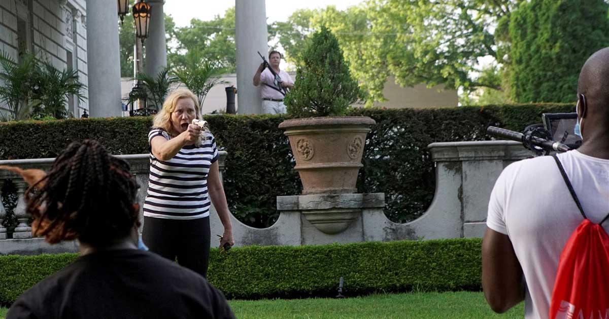 A number of videos and photographs showed Mark McCloskey wielding a rifle while Patricia McCloskey aimed a pistol at the marchers.