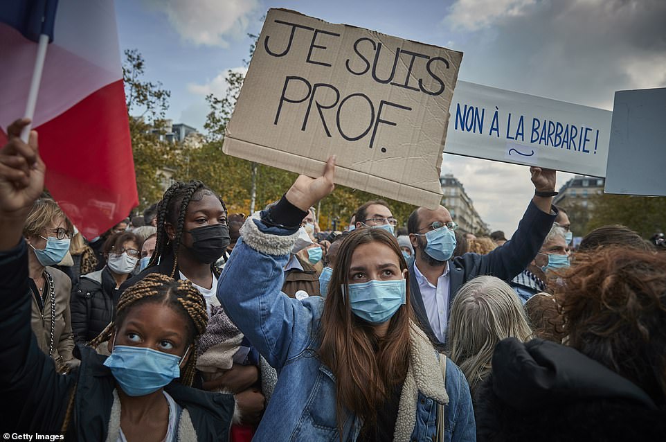 Many of the demonstrators held placards, where it was written, ‘I am Samuel’ which repeated the ‘I am Charlie’ rally after the 2015 attack on the satirical newspaper Charlie Hebdo, which published caricatures of Mohammed.