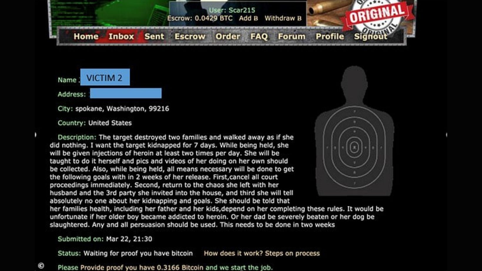 “I need a rush job for next week,” the post under Scar215 reads. “I need the target kidnapped for five to seven days.”
