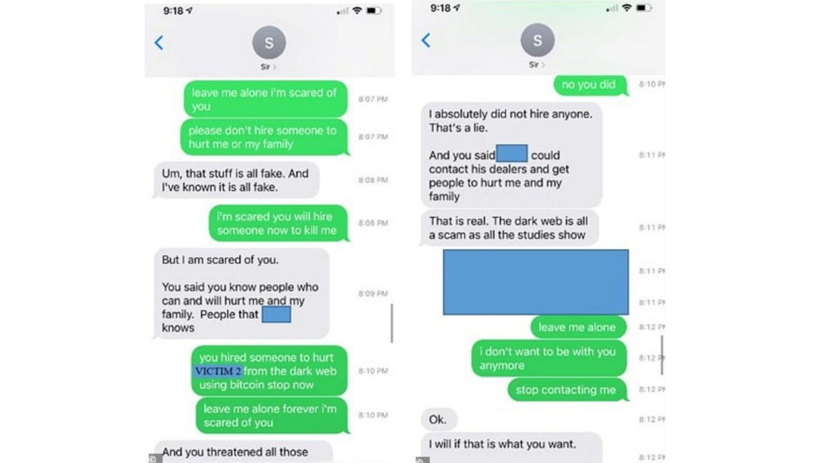 The unnamed wife provided the text messages to the FBI. This piece of evidence shows Ilg trying to hire someone in the dark web to kidnap her for seven days before he left for a trip to Mexico last weekend.