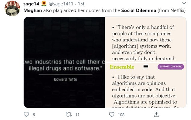 Twitter users shared screenshots from the documentary when Edward Tufte is talking about social media dangers. His and Meghan’s words are almost exactly the same.
