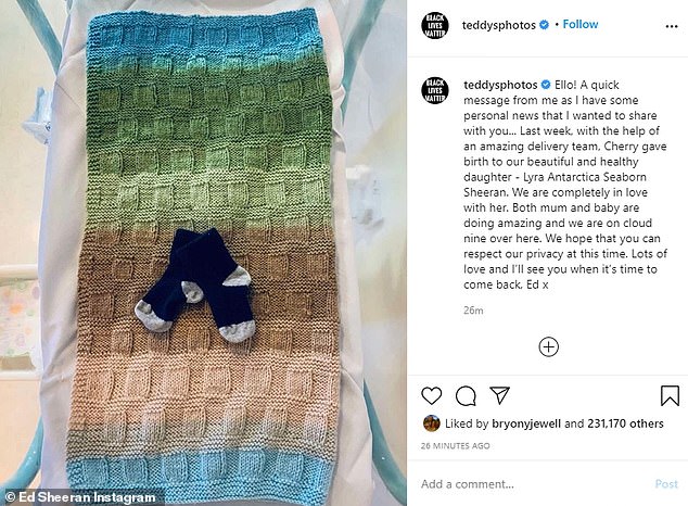 Grammy winner Ed Sheeran posted the picture with the long message that says, last week my wife gave birth to a beautiful and healthy girl Lyra Antarctica Seaborn Sheeran, with the help of an amazing medical team.