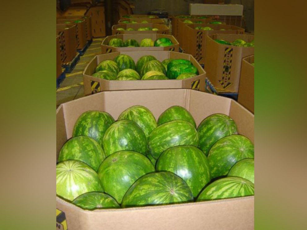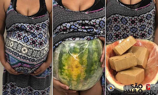 Authorities in Sao Paulo arrested a woman for smuggling 2kg of cocaine inside a belly made from watermelon.