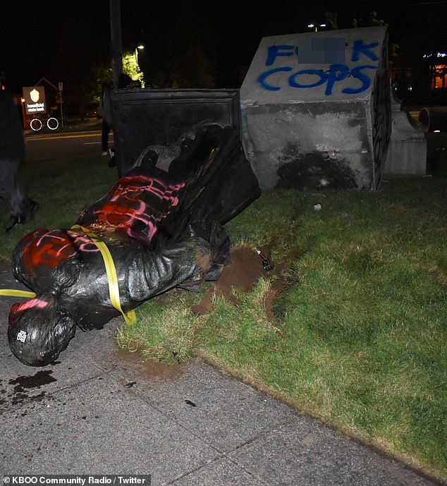 A statue of George Washington that dates back to 1926 was toppled by an angry mob of Black Lives Matter demonstrators on the evening of Juneteenth in Portland, Oregon.