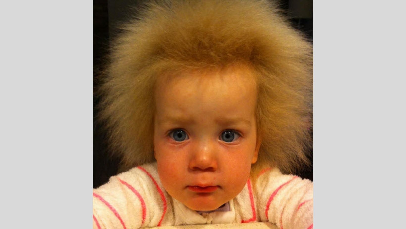 “Her brown baby hair had fallen out as it should but this weird fuzz started to come through and grow straight up,” she told Daily Star. “It was like nothing you’d ever seen before!”