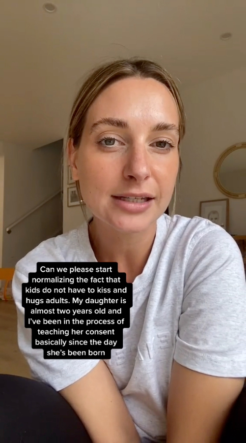 “I find it awfully unhelpful when adults fail to understand that my daughter doesn’t want a kiss or when a cuddle is invalid. Still, they try to force the affection upon her anyway,” the furious mum added.