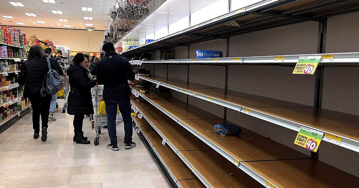 Italians emptied supermarket shelved to prepare themselves to stay at home to protect themselves from the virus.