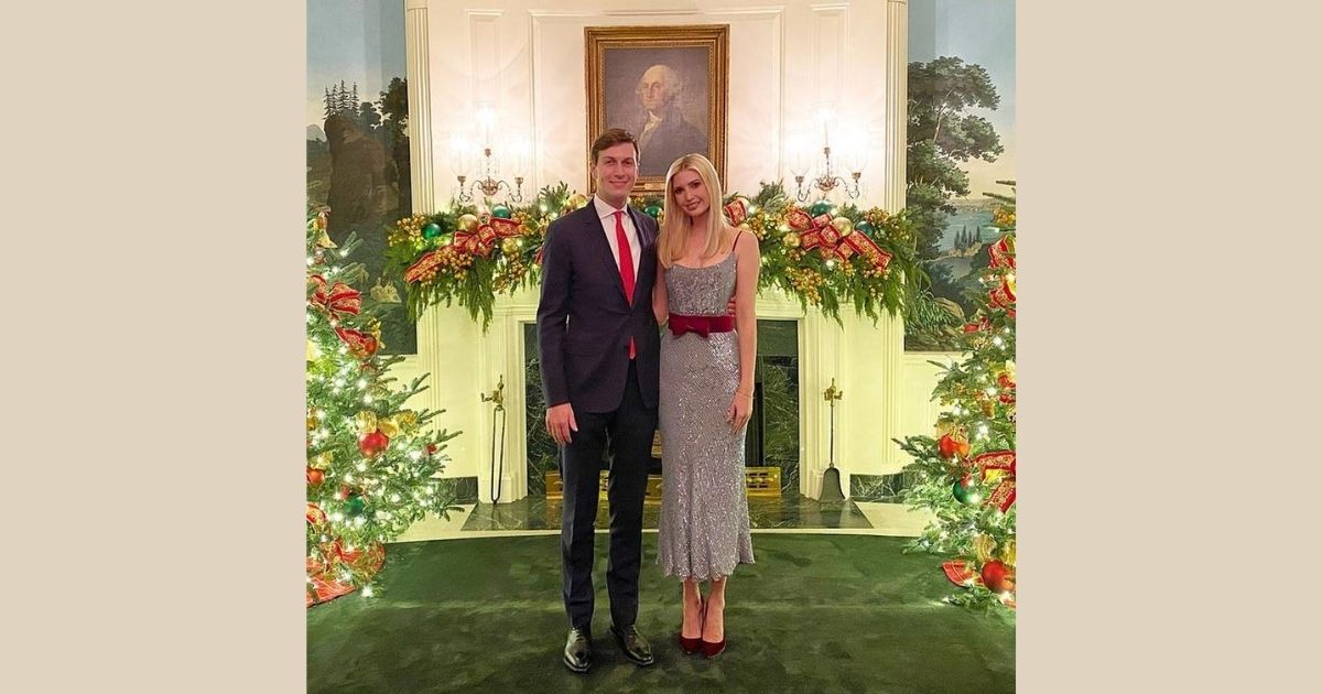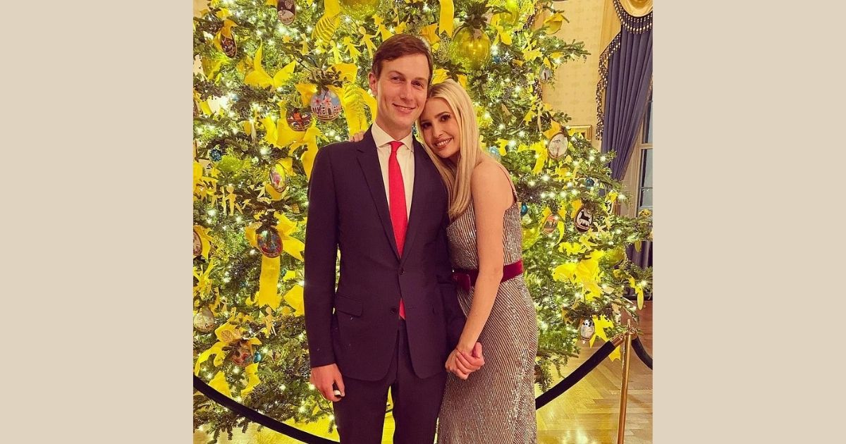 Ivanka Trump and her husband, Jared Kushner look lovely in photos taken on their tour of Melania’s final White House Christmas decorations Friday night.