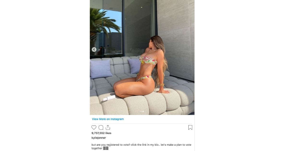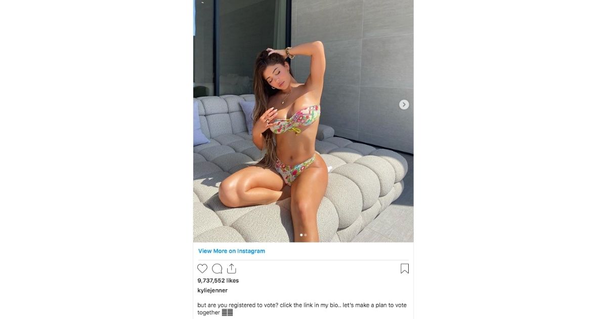 The link on Kylie’s account directed users to the Vote.org website, which allows people to check their registration status, and following her post, the site saw a mind-blowing 1500% boost from traffic driven via Instagram.