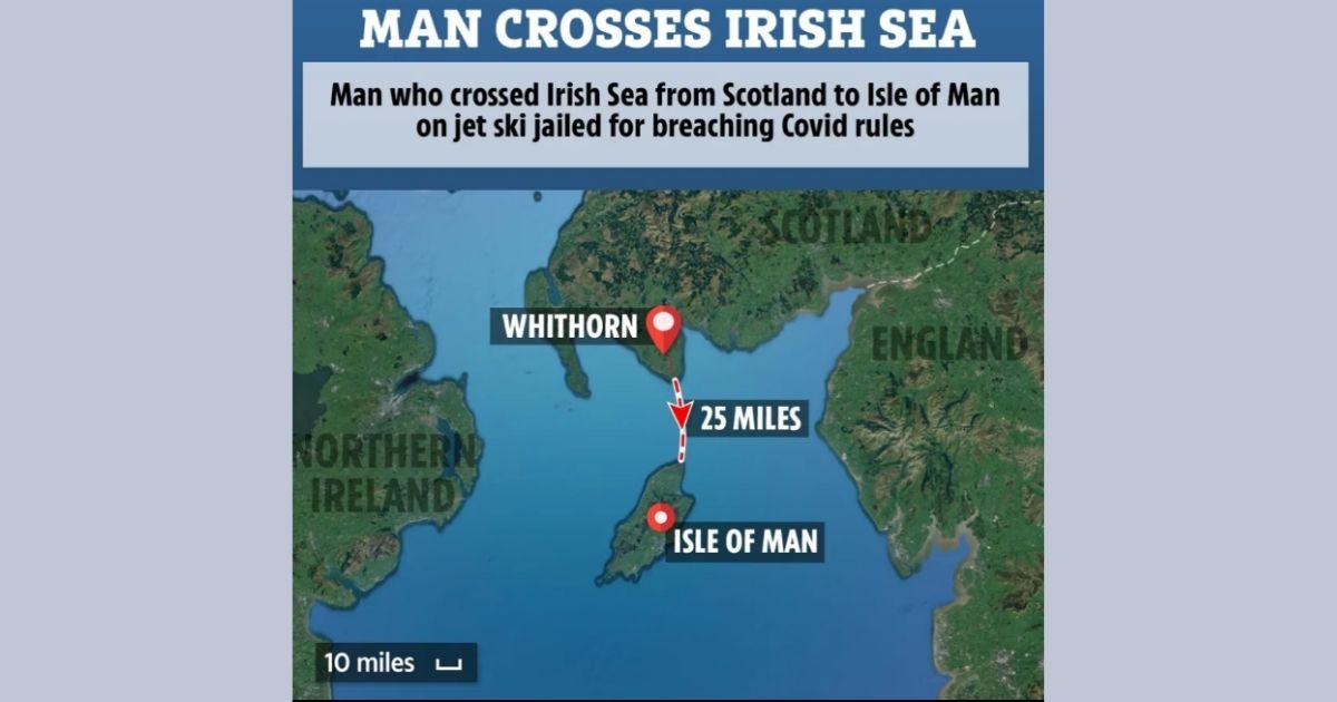 A man has been jailed for four weeks for traveling from Scotland to the Isle of Man on a jet ski to see his girlfriend during a lockdown.