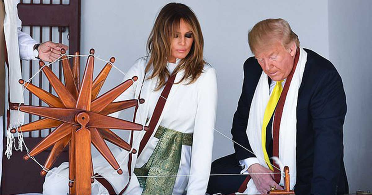 The first stop on the Presidential visit is the home of Mahatma Gandhi, where Trump tried his hand on the loom that the revered leader used during his time.