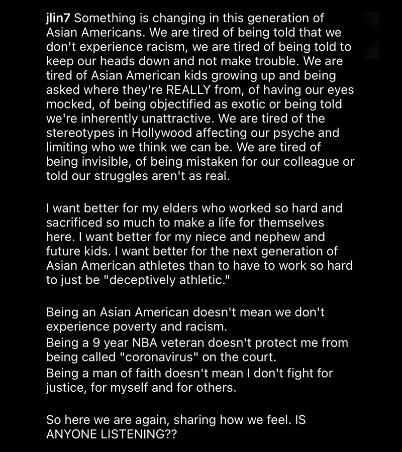 According to media reports, Jeremy spoke about the growing number of attacks against race, with special emphasis upon the Asian-American ethnicity. And that’s when the star player explained the great number of incidents where he experienced racism at its peak.