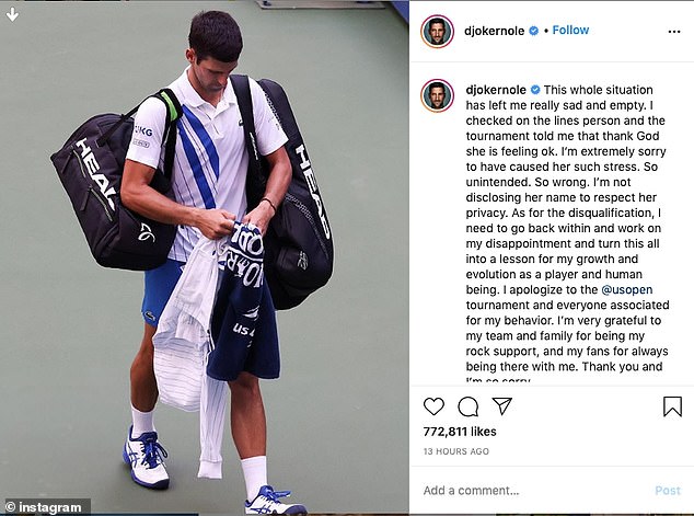 Within the consequences of the incident, the Serb tennis player posted an apology on his media platform. He wrote that he is terribly sorry that he brought such stress for her, it was unintentional, also that he learned a lesson from this whole situation. Furthermore, he apologized to the US Open event and to all the people who saw his behavior. And at the end, he added that he is really grateful for his family for being a rock to him, and to his followers for being always with him.