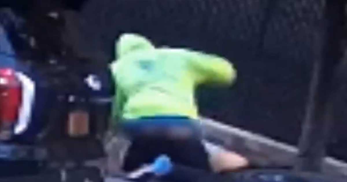 The video also shows the same man kneeling beside a woman laying on the ground and repeatedly being punched by the man in question.