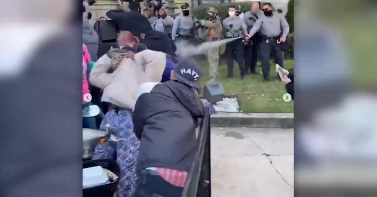 The officers’ pepper-sprayed the ground to disperse the crowd in at least two instances. First is when the marchers did not move out of the road following a moment of silence, and again after an officer was “assaulted” and the event deemed “unsafe and unlawful,” the Graham Police Department stated.