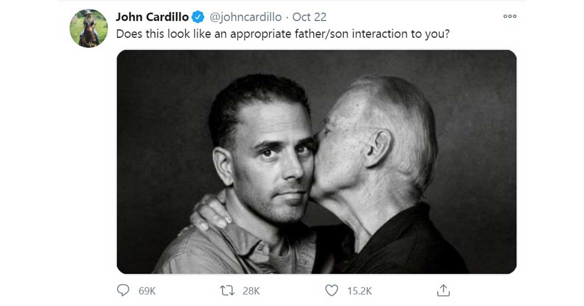 John Cardillo, a Trump supporter, former NYPD officer, and radio host, tweeted a black and white photo of the father-son duo with the caption, “Does this look like an appropriate father/son interaction to you?”