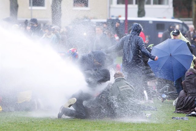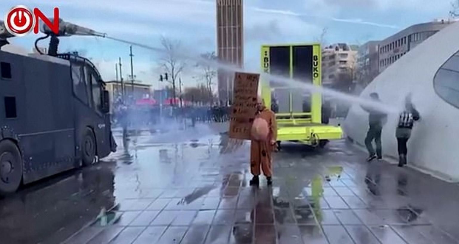 Police authorities in the Netherlands carried out a brutal water cannon attack which left one woman with a fractured skull.