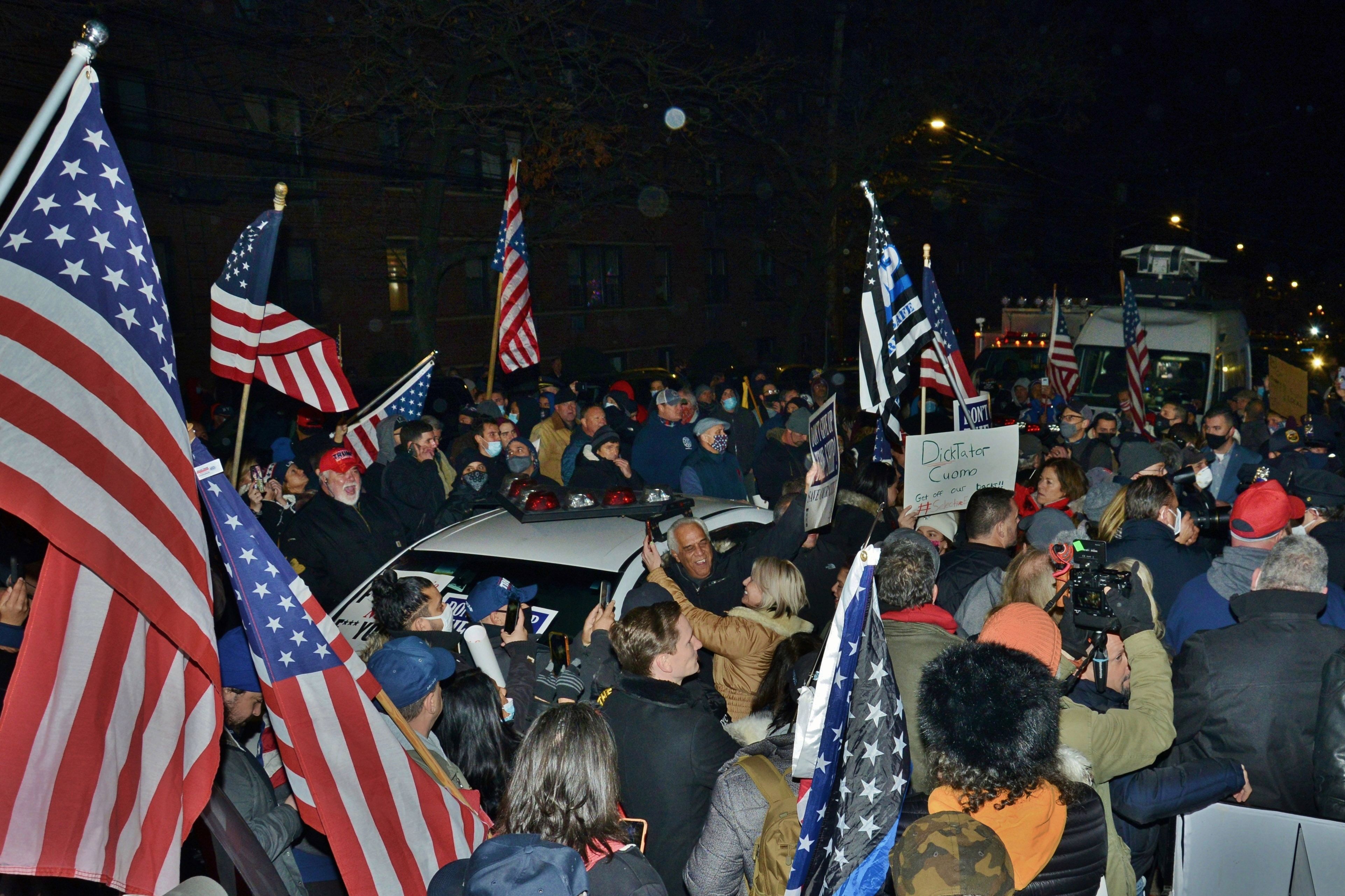The crowd chanted slogans against law enforcement authorities who sealed a famous Staten Island Bar.