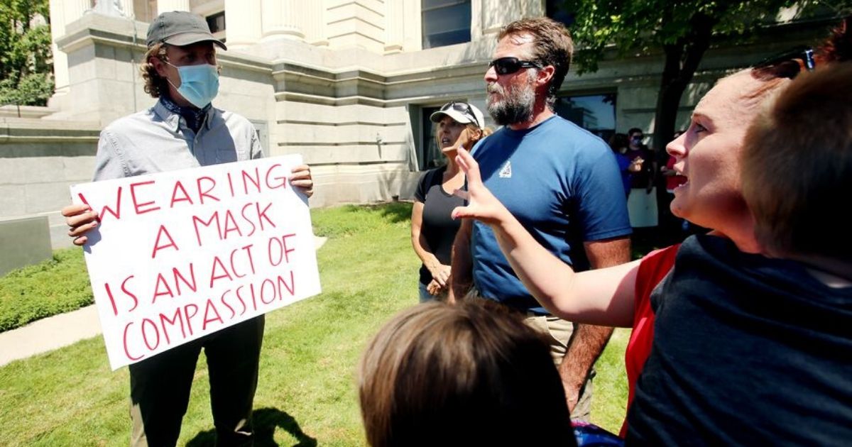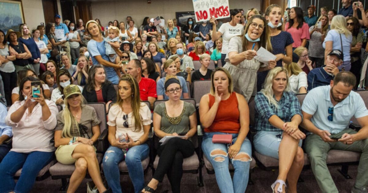In Utah, a public meeting about a mandatory school mask policy was canceled after dozens of people not wearing masks filled the room.
