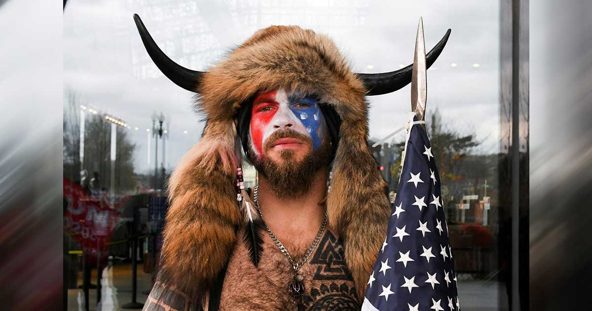 Jake Angeli, 33, who also goes by the name Jacob Chansley or QAnon Shaman, made his first court appearance on Monday after he was arrested for being part of the mob on Wednesday, January 6.