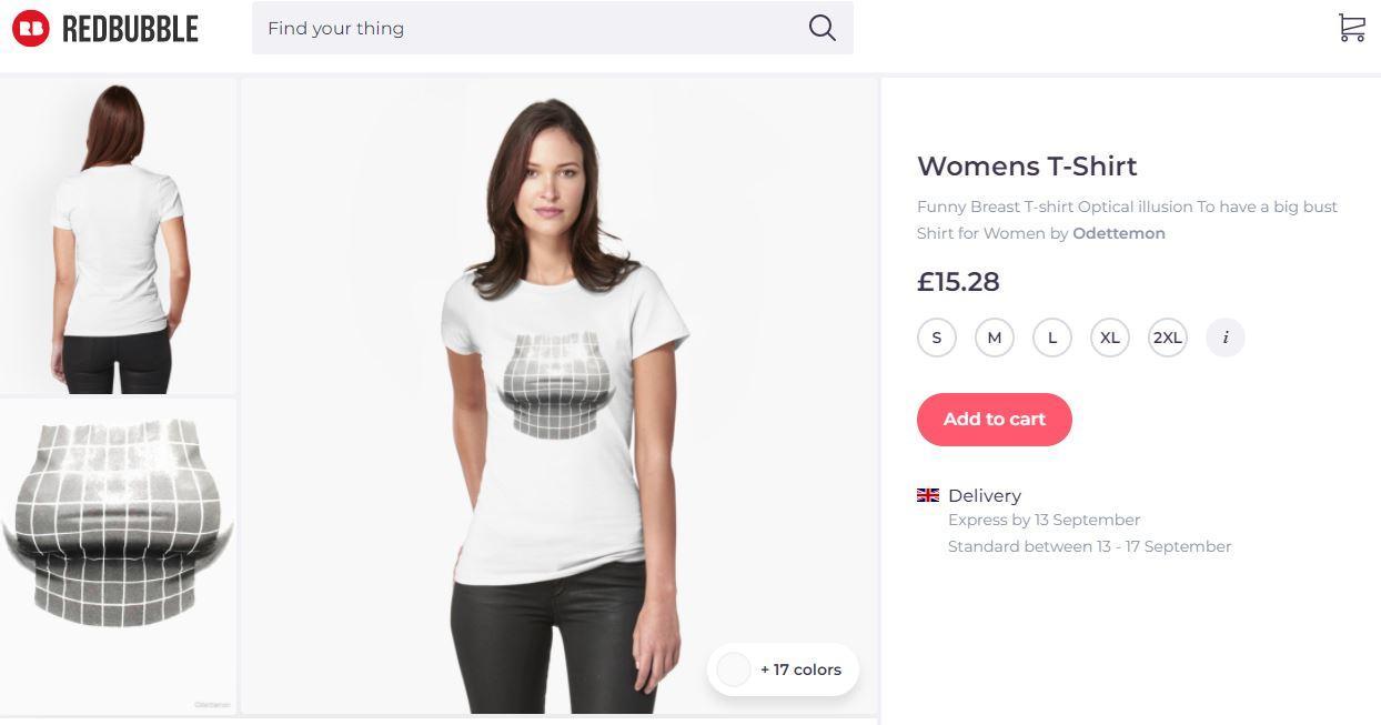 Hence, we made our way to do a fair bit of research and that’s when we found out the following bizarre facts. The tog has been designed in a very strategic manner that gives a women’s breast a bigger size at first glance. See, the shirt has strategically placed grey squares in the form of a grid. These lie flat across the chest region.