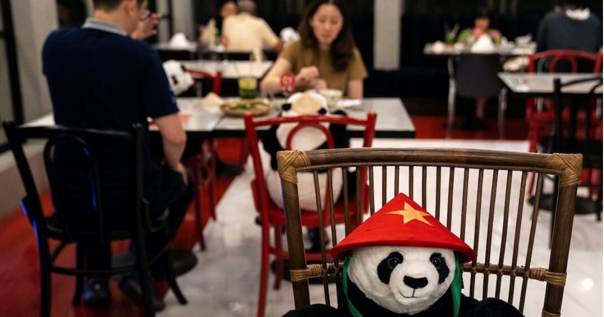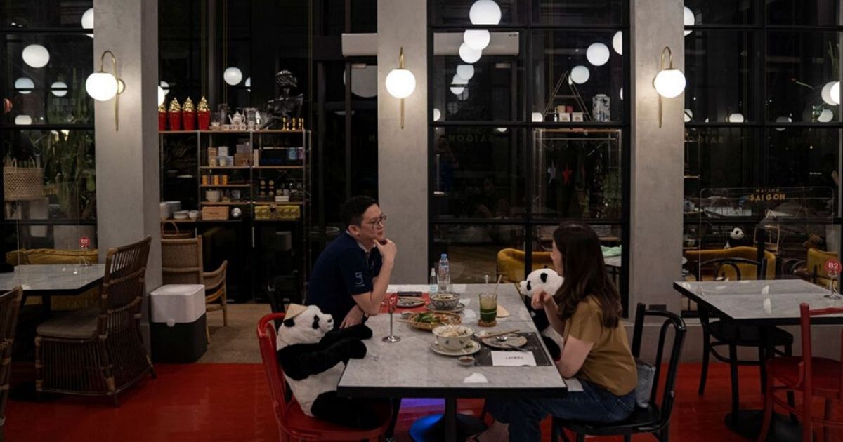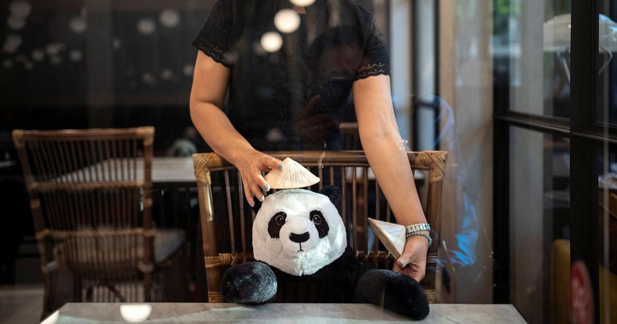 Maison Saigon has employed dozens of the cuddly little pandas to keep diners company, while also making it clear where customers are not allowed to sit.
