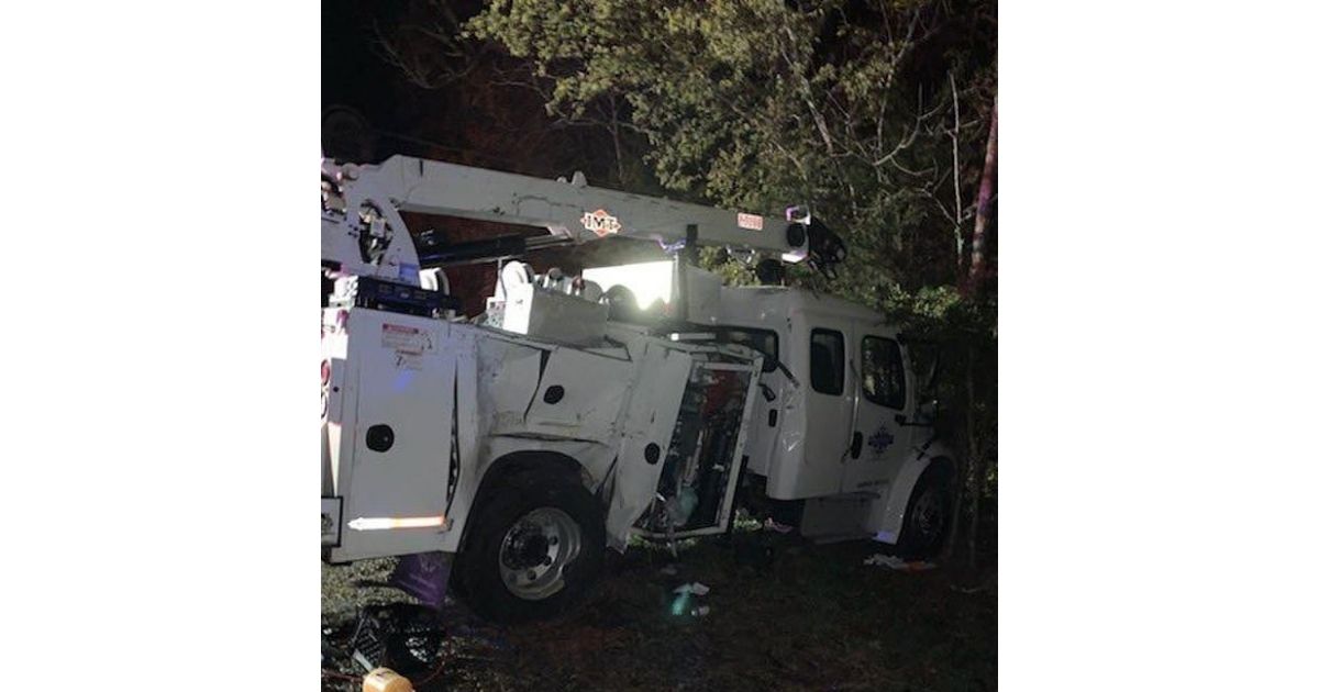 According to police, the driver of the utility truck was hospitalized with minor injuries.