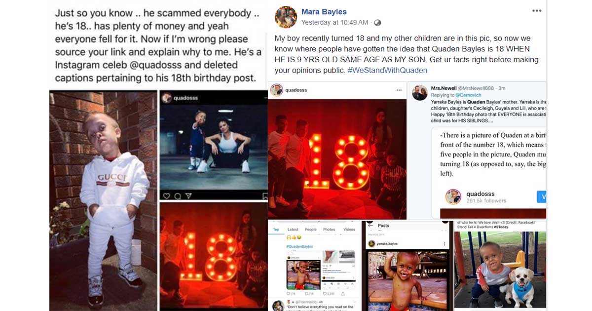 The “proof” seemed to have originated from a Facebook user, which showed that Quaden posted pictures of his 18th birthday.