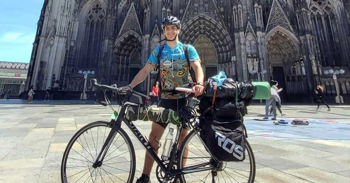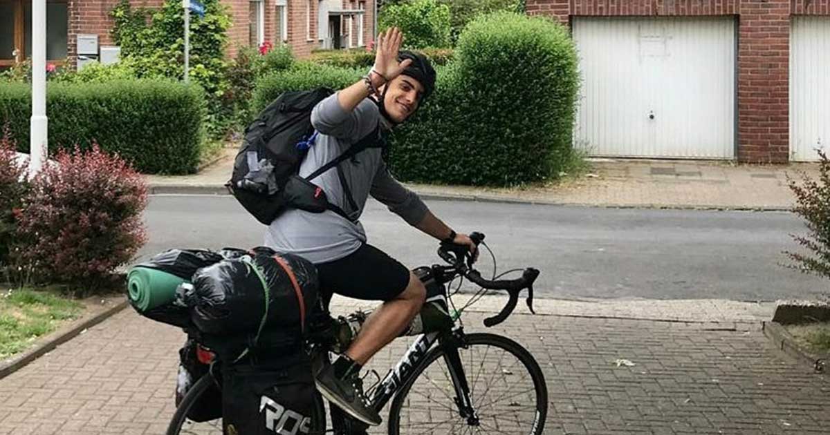 He purchased a bike and all the equipment he needs and began his journey on May 10.
