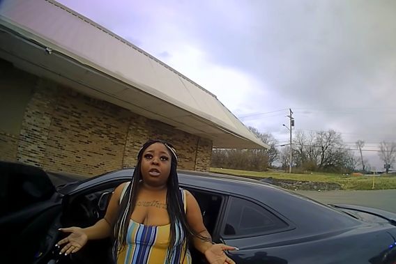 The footage shows her trying to reach for a weapon while attempting to sit in the driver’s seat. At this moment in time, she also tries to struggle against the officer.