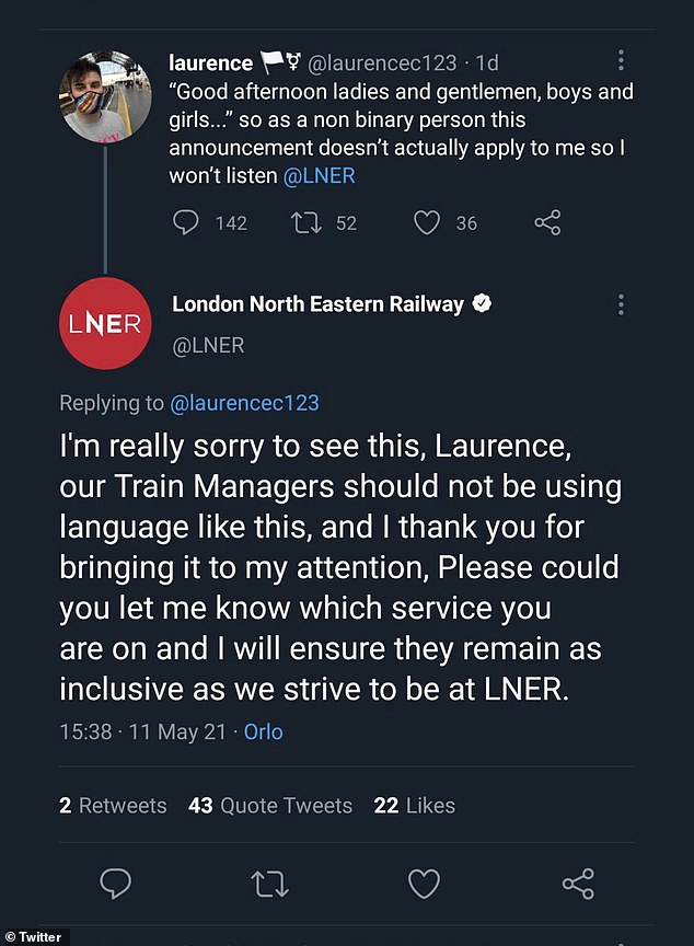 The worker was reportedly traveling aboard that train when all of a sudden the manager began greeting everyone with that phrase, which left plenty of the non-binary individuals feeling left out.