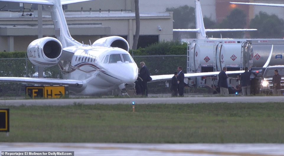 A set of latest pictures revealed how Donald Trump was boarding a private jet that would take him out of the state of Florida on Sunday evening.