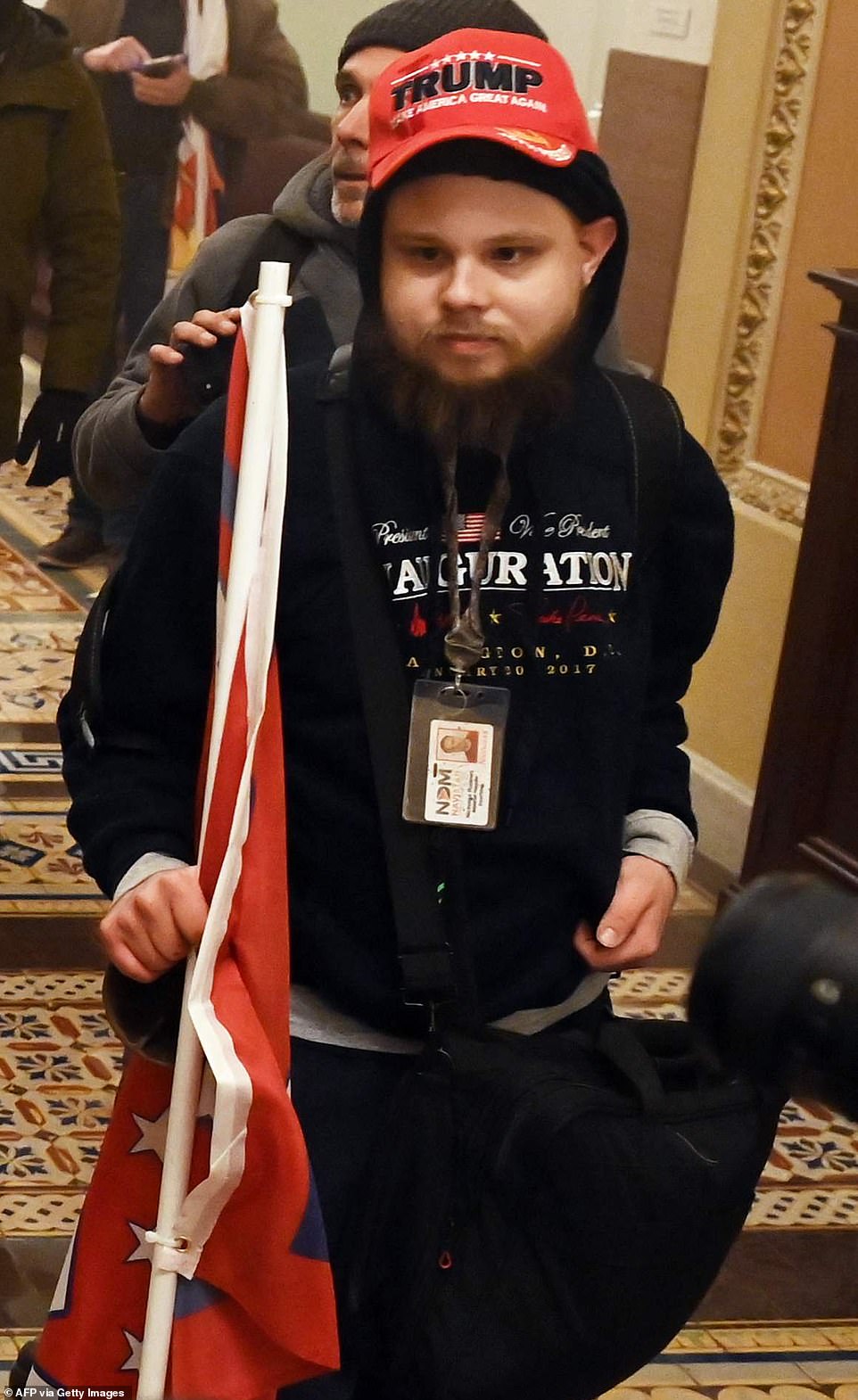 Recently, several photographs of the employee showed him standing next to another heavily tattooed Pro-Trump rioter. The latter also donned horns, fur, and face paint too. He was identified as Jake Angeli.