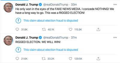 Meanwhile, Twitter says that announcing his plans regarding the inauguration might be viewed as a further statement of how the recent elections weren’t legitimate.