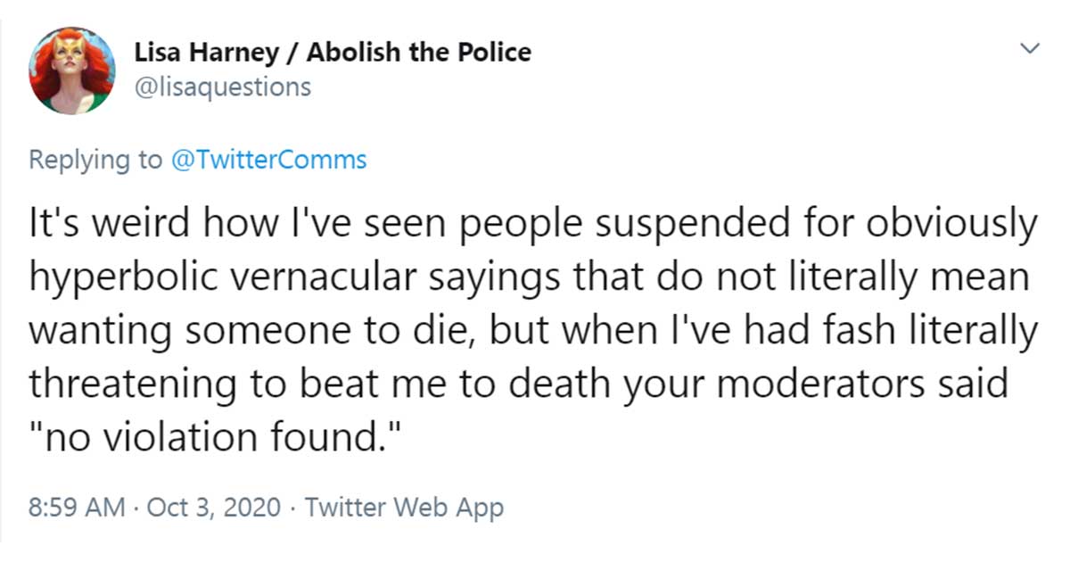 Some users cite that the said rule had been violated repeatedly in other topics such as racism, with one pointed that moderators said “no violation found” when she reported an account that threatened to “beat me to death.”