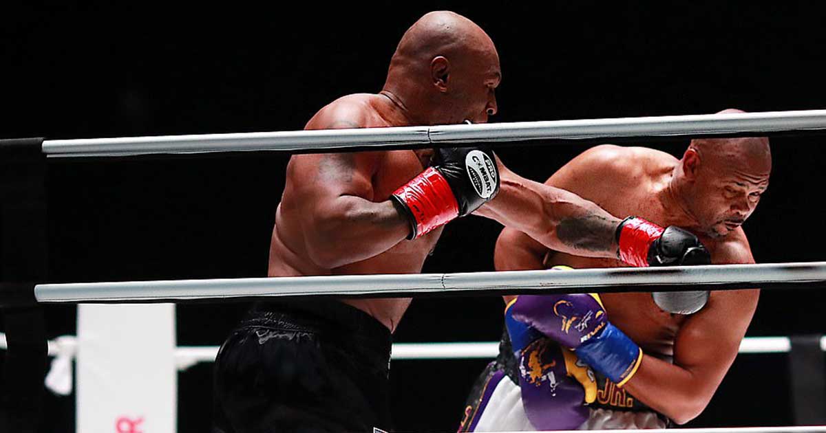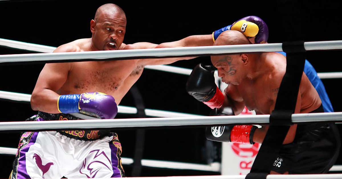 Occasionally, Tyson lands his trademark left hook at a distance while Jones showed flashes of his old self with no-look jabs and showboating to boot.