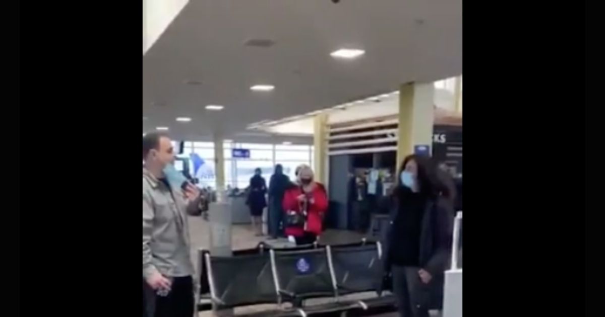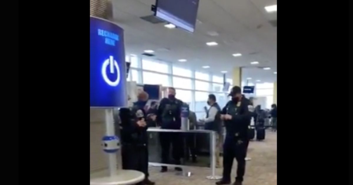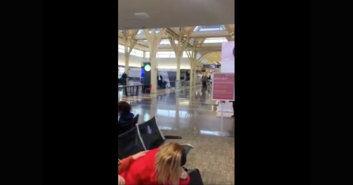 “They kicked these people off the plane because they support President Trump and you’ve got all these f*cktards standing around doing nothing,” the man said in the video. “They were waiting for these people to come off the plane because they support President Trump.”