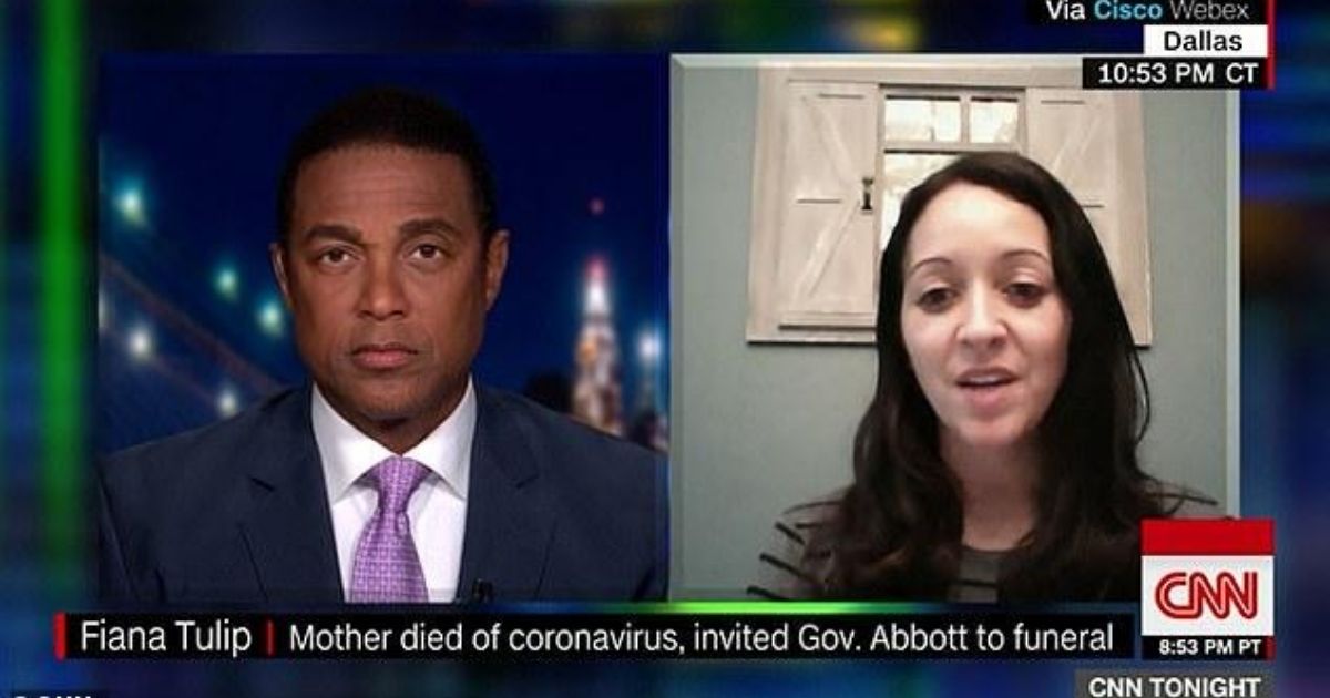 On Wednesday, Tulip told Don Lemon in a CNN report that her mom ‘could still be alive had there been a mask mandate much earlier on and had Texas stayed closed.’