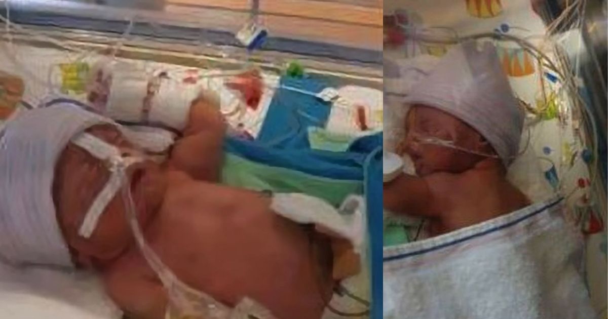 They found out that the baby —who was named Herman— had a collapsed lung after being born 10 weeks early, but is reported to be doing well after spending time in an incubator.