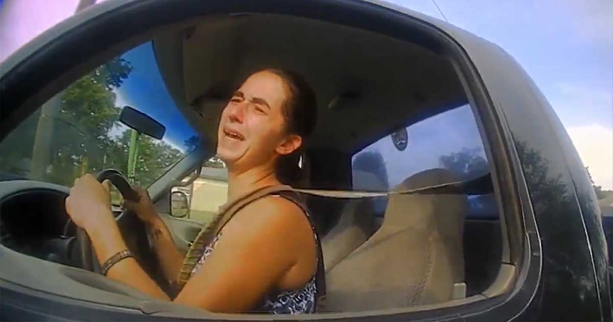 She led officers on a short chase, reaching speeds of 70 mph in a 30 mph zone, passing an elementary school through an intersection with a four-way stop before ultimately stopping and surrendering to cops with their guns drawn.